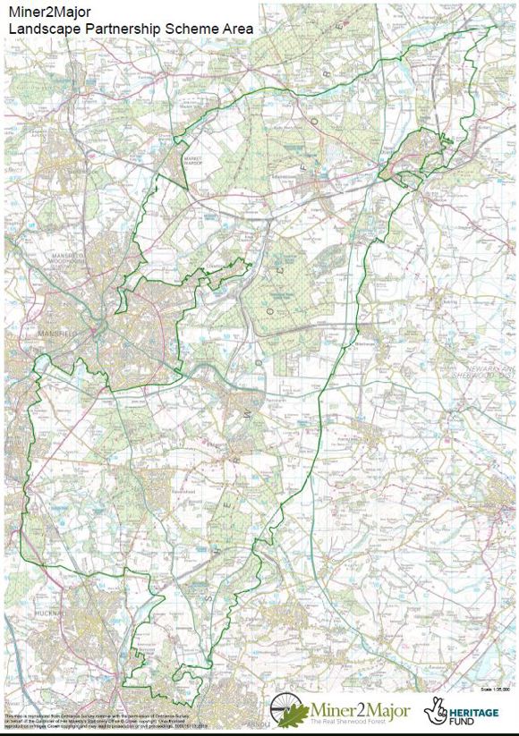 The map image below shows the Miner2Major Landscape Partnership area, identified by the green border line.