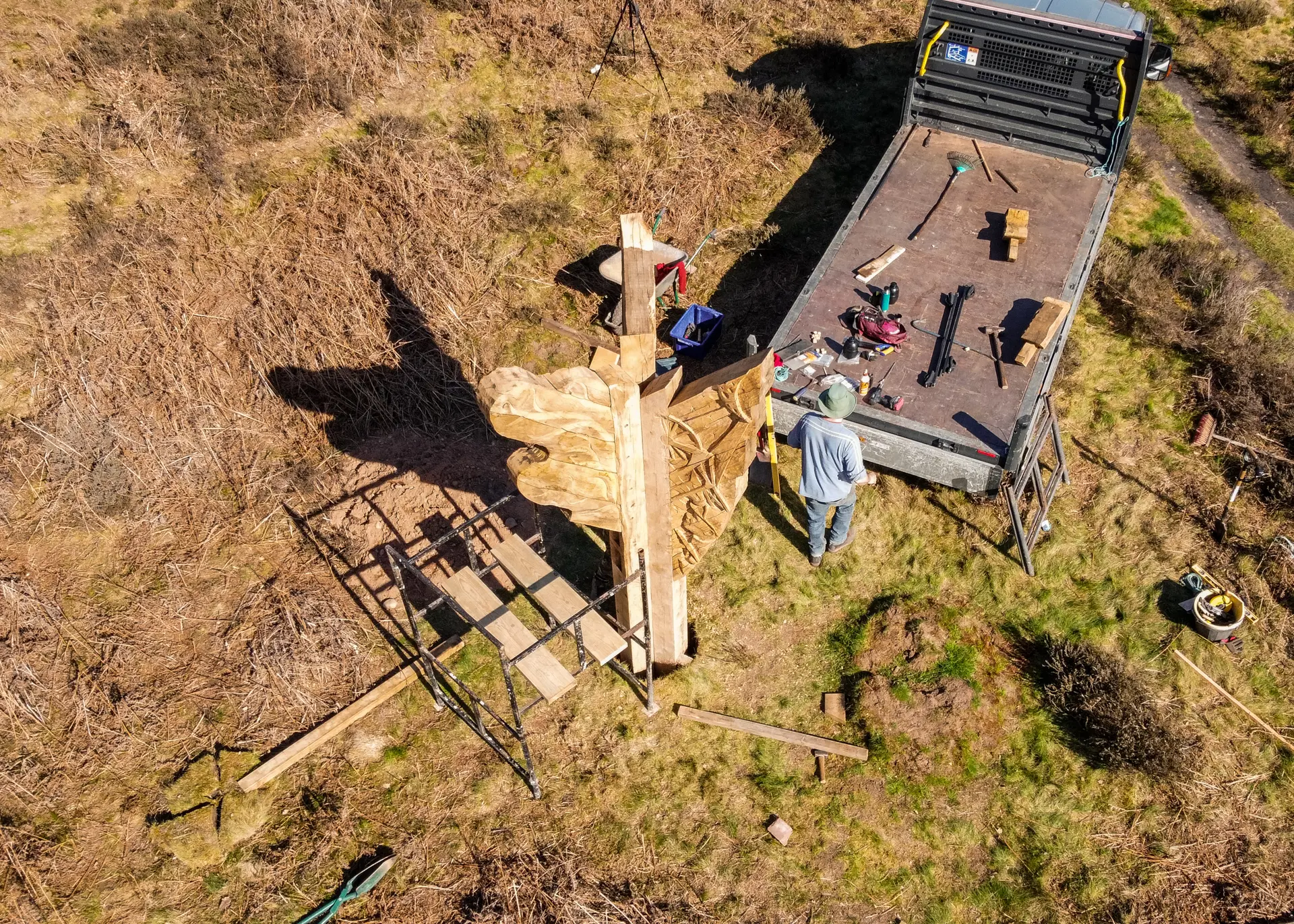 Nottinghamshire Wildlife Trust proudly unveiled its new sculpture at Rainworth Heath Nature Reserve – a giant oak arrow - which pays tribute to the area’s captivating heritage, it’s past and present and deep connection with local legends. The sculpture is the result of a year-long engagement project, delivered by Inspire Youth Arts through Miner2Major. The sculpture was created in collaboration with young people from Dawn House School, Joseph Whitaker School, and the Nottinghamshire Wildlife Trust Young Rangers. Artist Richard Janes facilitated workshops with the schoolchildren, working with them on themes of mining, local heritage, and nature over the last year. The children were introduced to wood carving techniques then given the opportunity to ‘make their own mark’ and add their own carvings to the sculpture themselves under Janes’ guidance. The sculpture’s final design features an image of a miner and local wildlife species from the Rainworth Heath site. Crafted entirely from oak, the final artwork resembles a colossal arrow shot into the ground. Purposefully designed to fuse the rich history of the area with the local landscape and blend into the natural surroundings of the reserve. The oak arrow sits at the heart of the Rainworth Heath site and will weather naturally. Visitors to the area are encouraged to come and see the sculpture and discover more of the site and its local walks – which is located adjacent to the former Rufford colliery site. The Rainworth Heath Nature Reserve is managed by the Nottinghamshire Wildlife Trust and is one of the last remaining areas of heathland in Nottinghamshire, home to many species of birds, insects, and plants in the heart of the Sherwood Forest area. The project has been a creative way to engage young people in Nottinghamshire with the natural landscape and local history. Sculptor Richard Janes worked with both schools involved the project and produced sculptures for each school that link with the Rainworth Heath work.